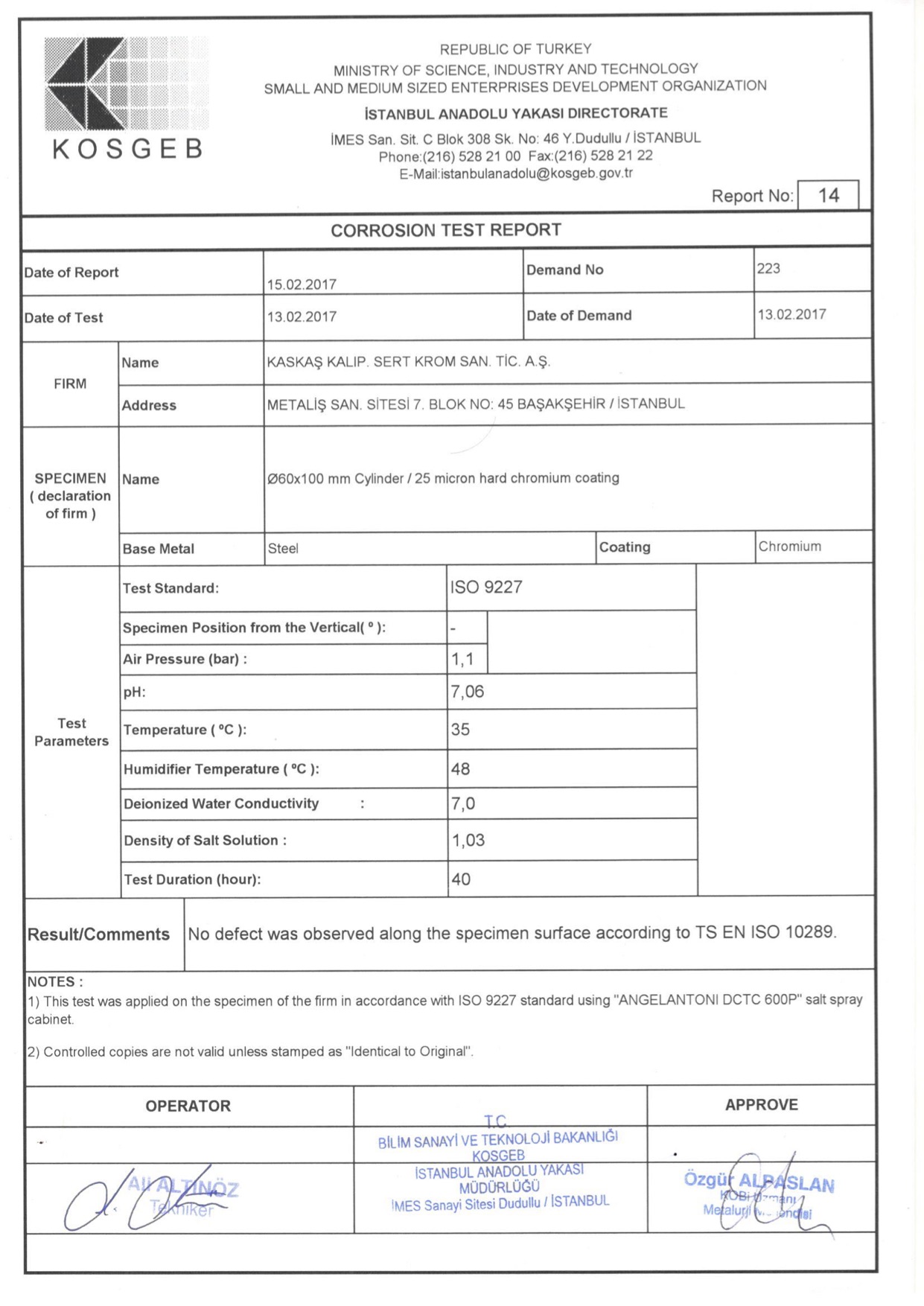 Krozyon Test 40 Saat – İngilizce | Kaskas